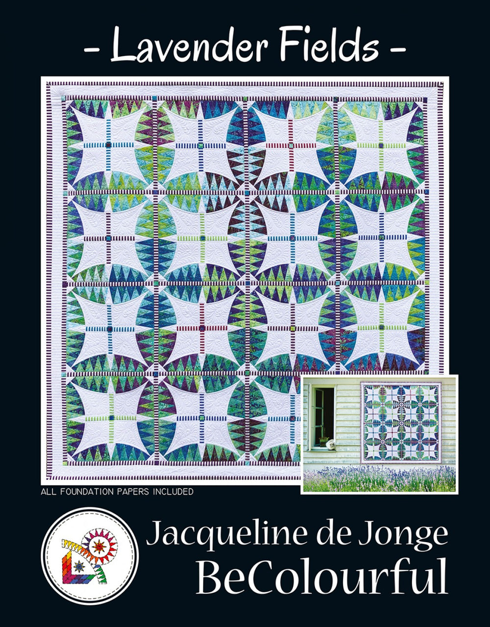 Lavender Fields, 68 x 68. Close your eyes and dream of the lavender fields of France. Take a deep breath and smell the lavender and the sun, see the beautiful blue sky and hear the birds…. mmm. This is a great design for your customers to start with paper piecing and to conquer the fear for curves. The easy to follow instructions and the diagrams say more than words. Step into the wonderful world of BeColurful!