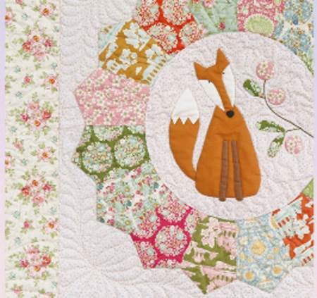 There are nine applique blocks set in large dresden plates featuring foxes, birds and bees just to name a few.