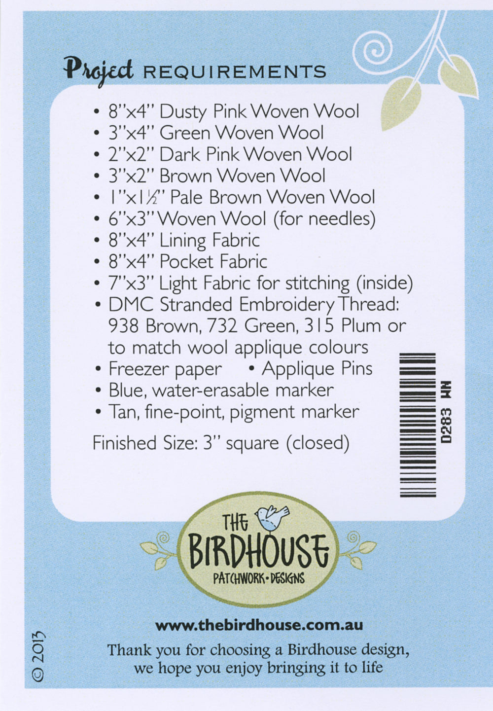 3in Square (Closed) and 3" x 6" (opened).  A small wool needlebook, featuring a bird wool applique and stitchery inside.