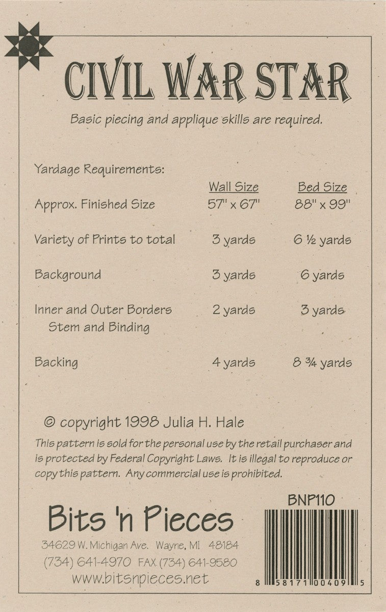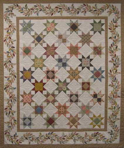 Select from 2 sizes and make a reproduction style quilt with an applique border. Includes complete instructions for machine piecing the stars and a full size applique border design.