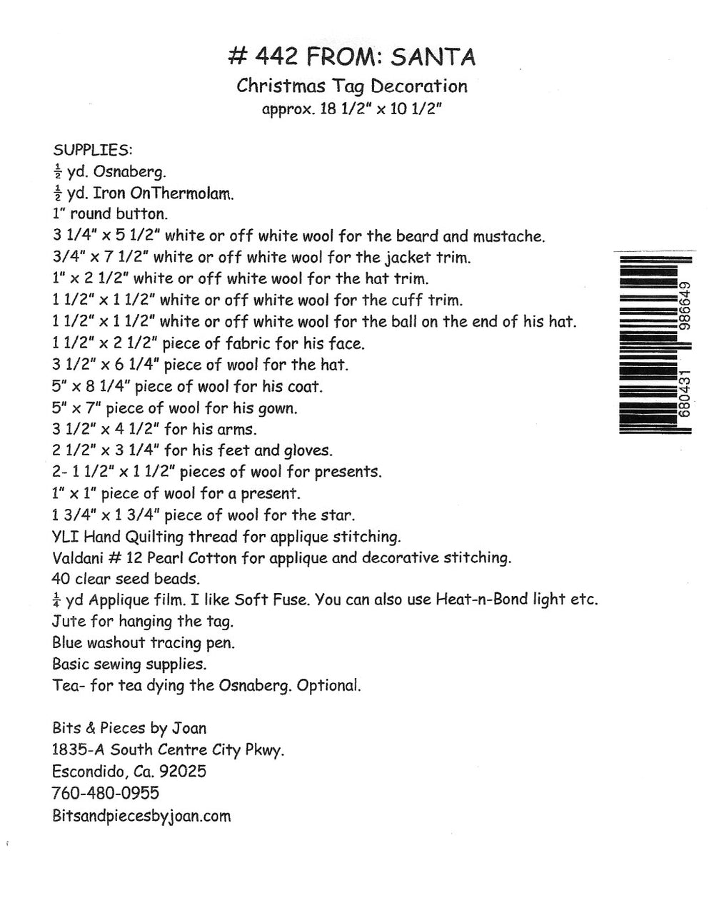 FROM: SANTA Pattern is backordered and will ship as soon as it is back in stock.