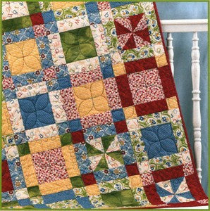 25in x 42in. A little quilt from 8 quilters quarters! Pattern includes optional pinwheel centers.