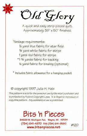 Old Glory Quilt Pattern is backordered and will ship as soon as it is back in stock.