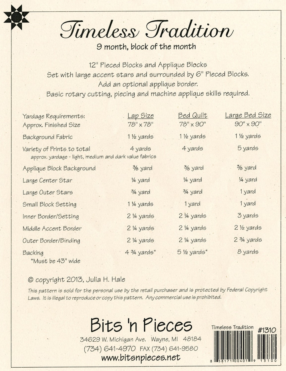 Timeless Tradition Block of the Month is backordered and will ship as soon as it is back in stock.