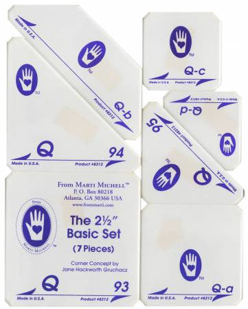 Use it with Sets T, Q and R. Set Q, the basic set for 2-1/2-inch units, is the perfect companion to the 5-inch Set T family. The sampler quilt showcases a dozen 15-inch sampler blocks made with Set Q.