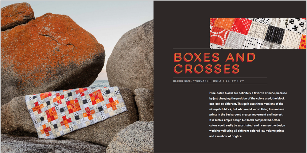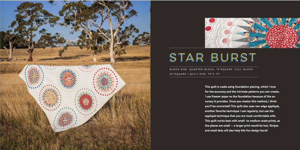 Emma demonstrates quick piecing methods, raw-edge applique and freezer paper foundation piecing to achieve stylish, modern quilt designs. The inspiring patchwork projects are photographed in Emma's native Australia, and ranges from the bold and geometric to the elaborate“but all projects focus on how to use those beautiful bundles of fat quarters.