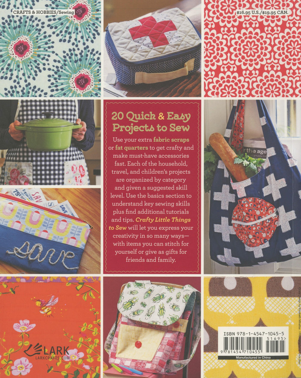 Crafty Little Things to Sew contains 20 quick and easy projects. Adorable must have items to sew in a session or two - even if you're a total beginner! From pouches and totes to baskets, these clever and crafty little things will make you feel like a superhero stitcher. The 20 projects include a quilty first aid kit, cute magnets, headbands, hair baubles, travel iron mats, and more. Each is made with fat quarters of fabric. Newcomers will find so many pictures, diagrams, and tips that they will feel like the author is right beside them. Full color, 8inx 10in; 144 page paperback.