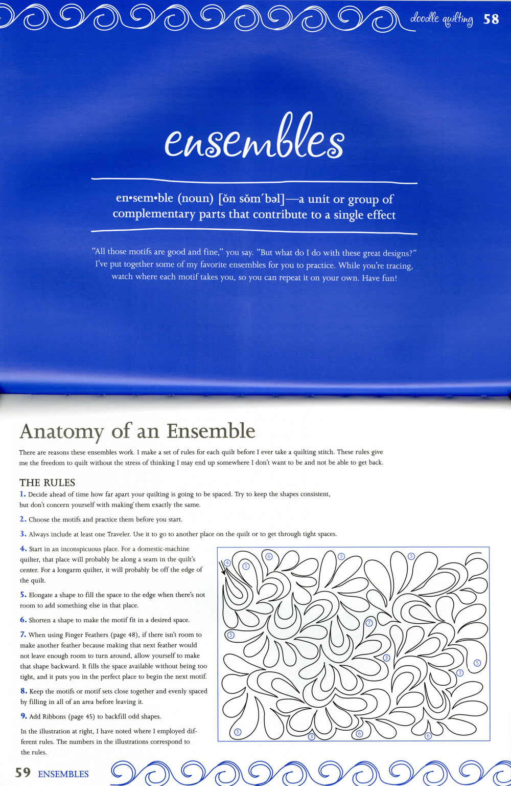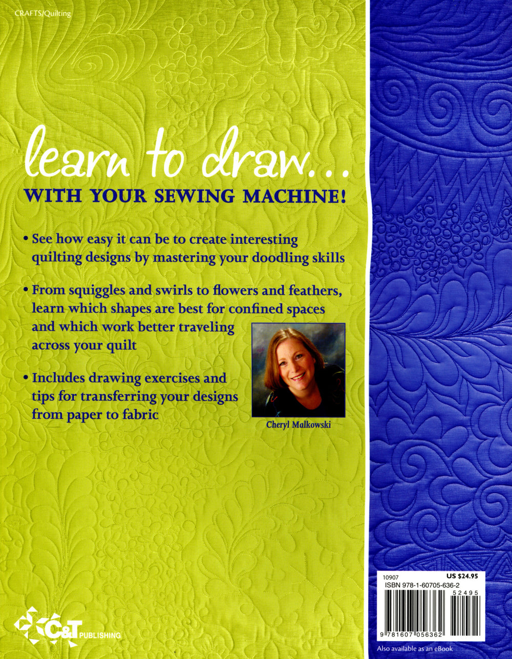 Cheryl Malkowsi makes it easy to free-motion quilt by mastering your doodling skills! In her beginners guide to continuous-line quilting designs, learn how to select the right shapes to get where you need to go; sometimes the hardest part is figuring out where to quilt next. Squiggles, swirls, flowers, feathers¦learn which are best for confined spaces and which work better traveling across your quilt. Gain confidence in your ability to draw basic shapes, then learn how to put them together into over a hundred all-over quilting designs. Includes drawing exercises and tips for transferring designs from paper to fabric.