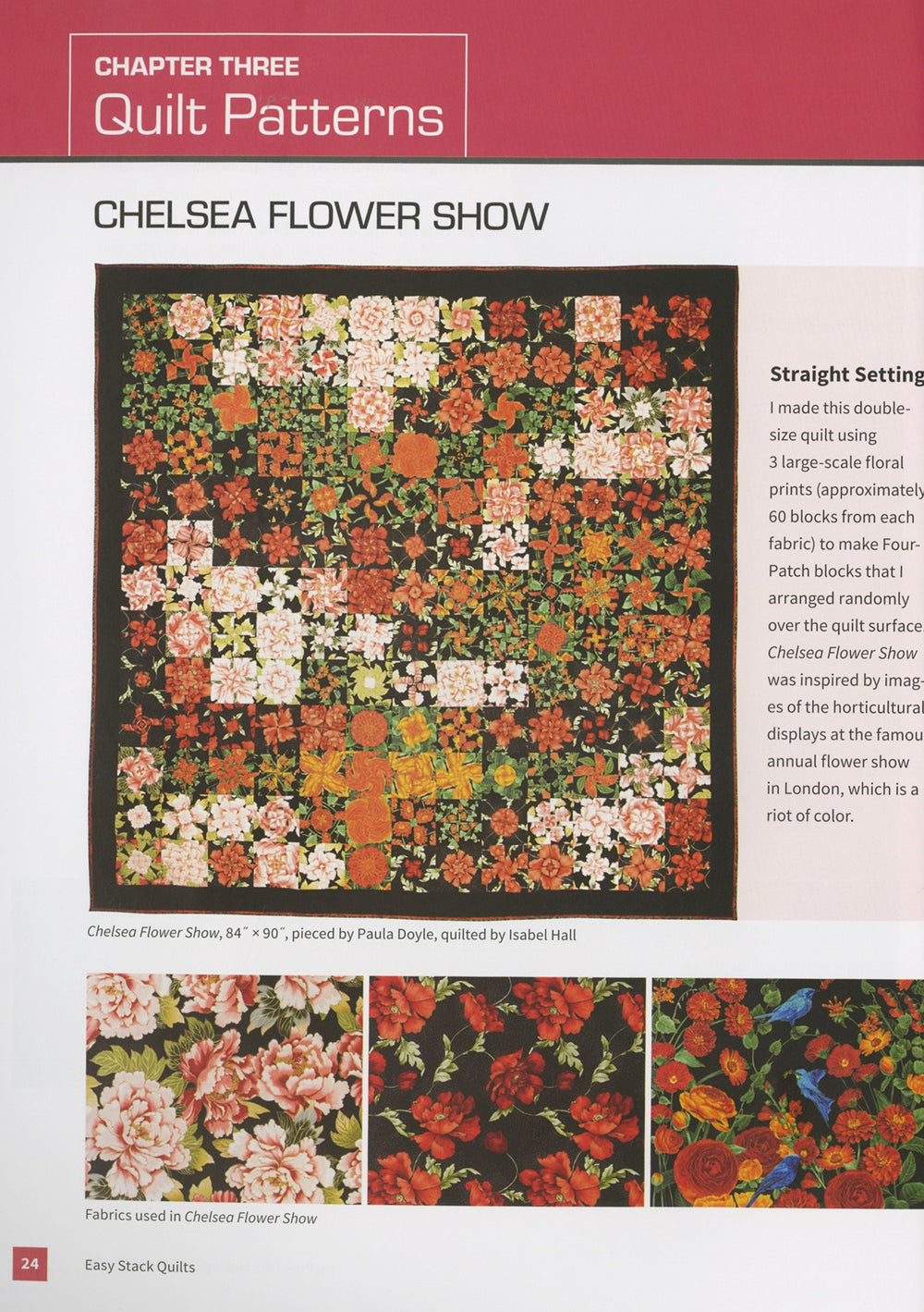 Easy Stack Quilts is a quick-cutting, fabric-efficient way of making dramatic kaleidoscope quilts using large-print fabrics.
