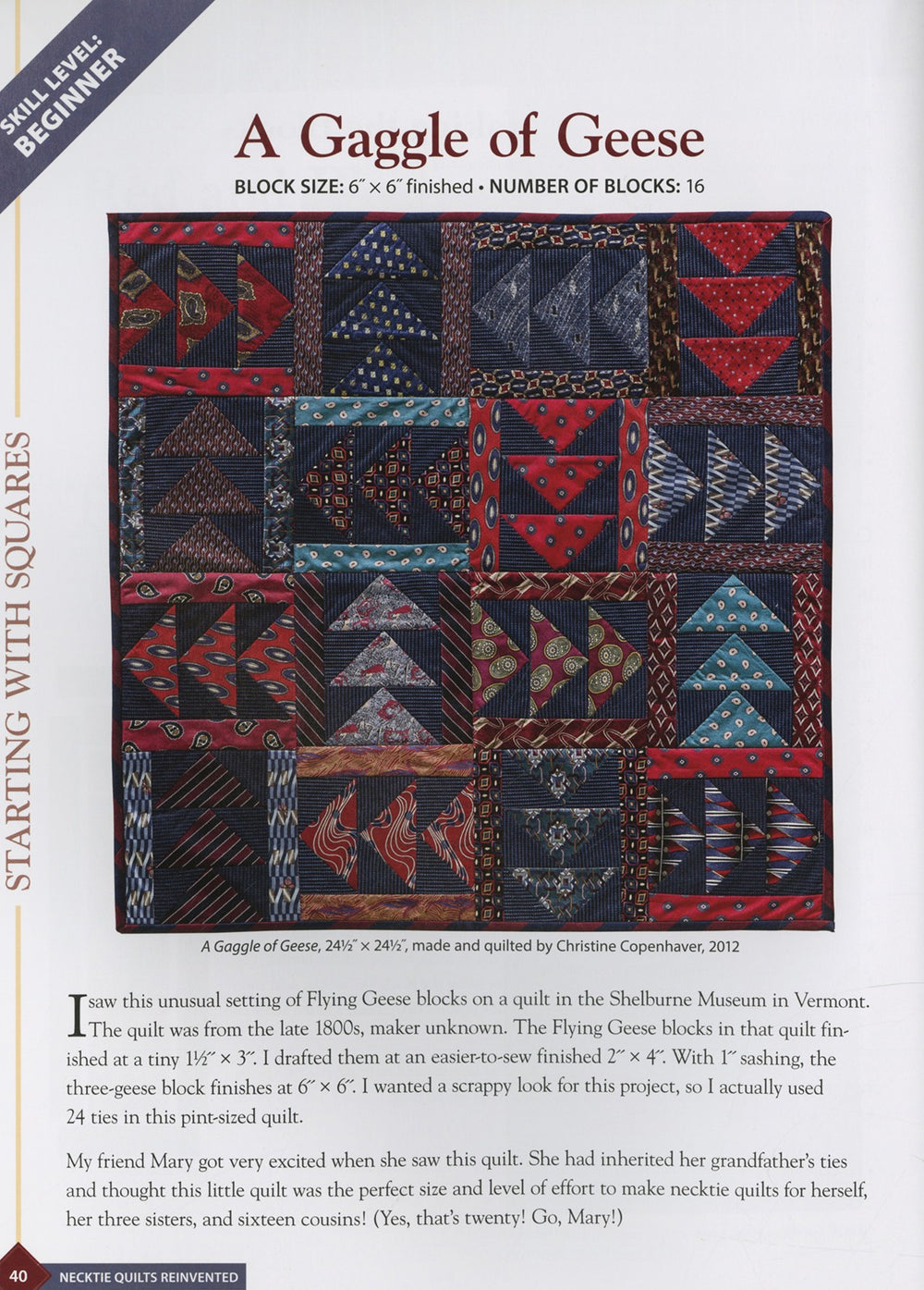¢ Give old neckties a gorgeous new life with 16 quilted projects: lap quilts, wallhangings, runners, table topper, and pillow.