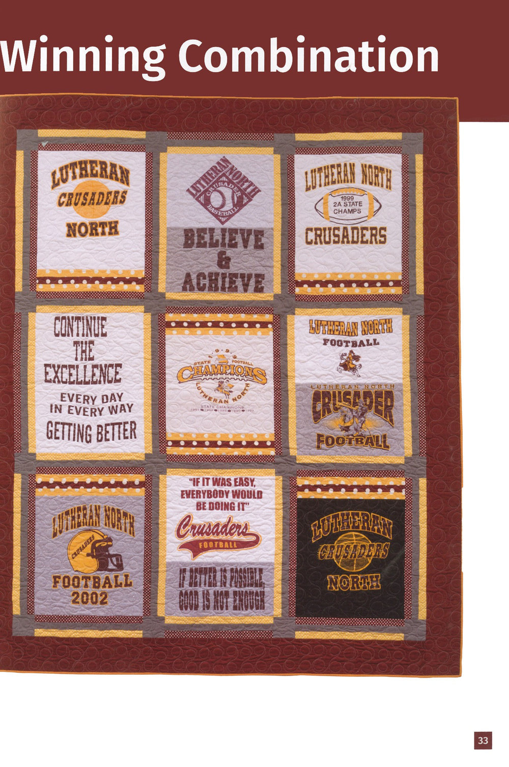 Mix and match motifs of different sizes and shapes for fun and easy designs Preserve favorite memories with themed quilts such as sports, school pride, travel and adventure, music, and more in sizes ranging from lap to bed sized Find out how fusible interfacing and zigzag seaming ensure success with stretchy T-shirt fabric.