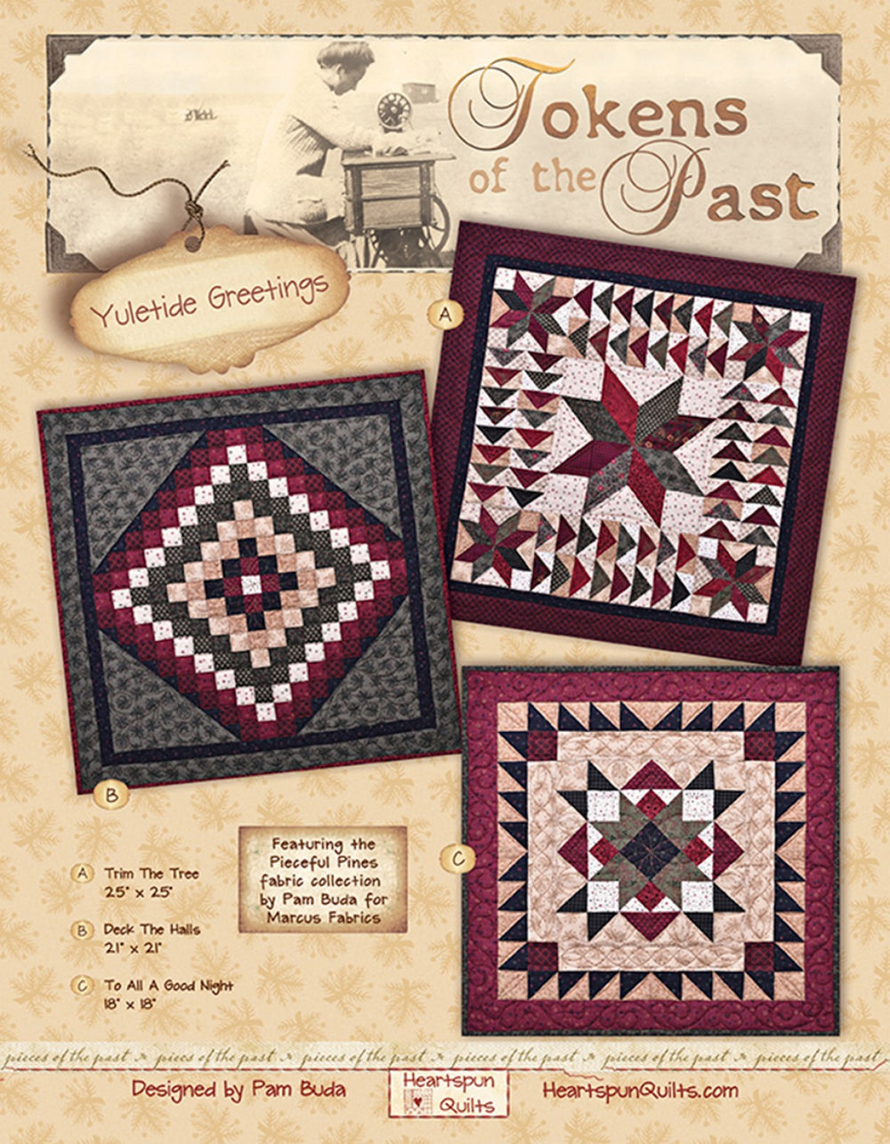 Three small quilts featuring the Peaceful Pines Collection by Pam Buda for Marcus Bros
