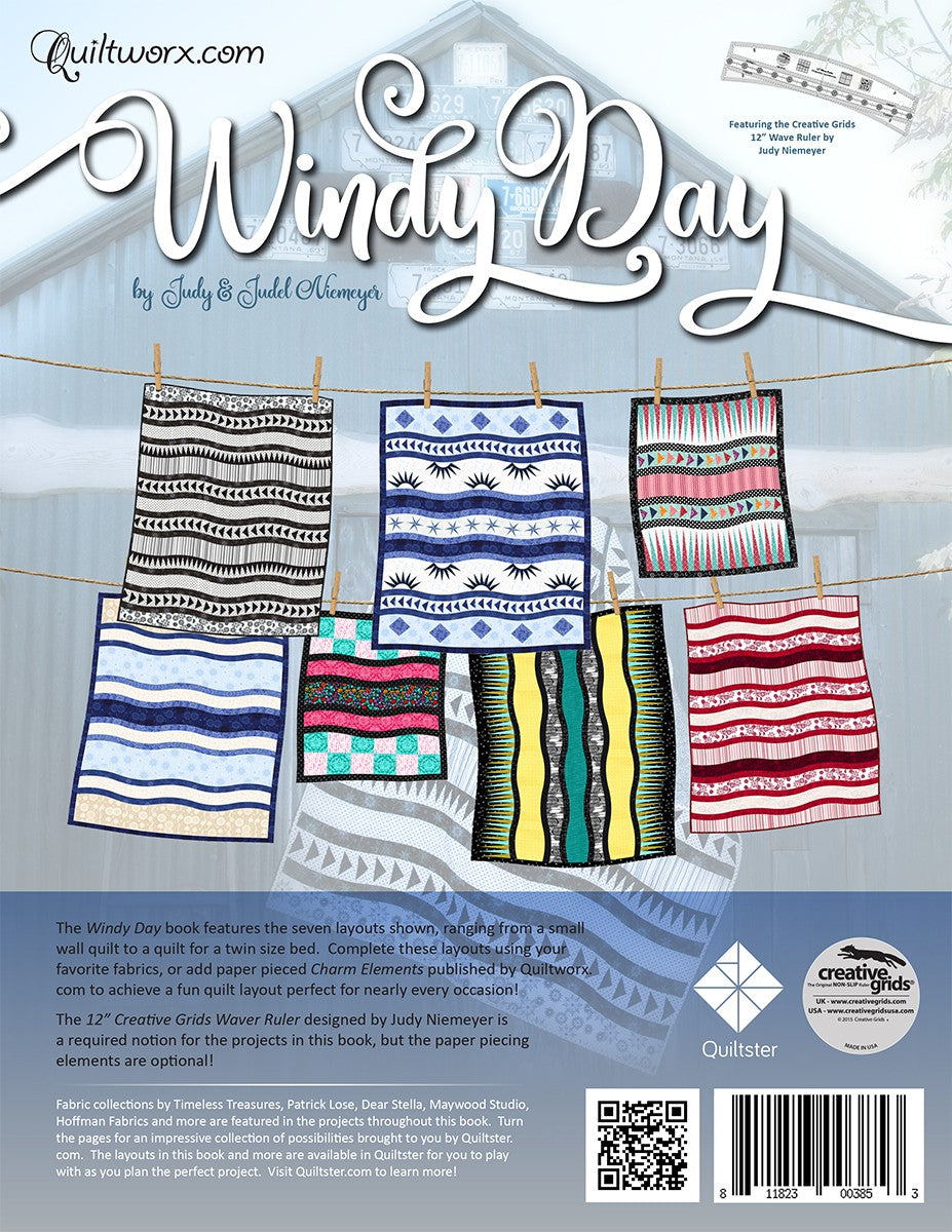 Quiltworx is publishing a small collection of book patterns featuring the Creative Grids 12in Wave Ruler designed by Judy Niemeyer. Options are available in the book for making a variety of layouts, some that require the purchase of Quiltworx Charm Elements (Coming Soon!) to add paper piecing, and others that can be pieced with simple 4 patch and 9 patch traditional piecing techniques. Use this fun ruler to create great designs featuring fun fabrics from across the industry!