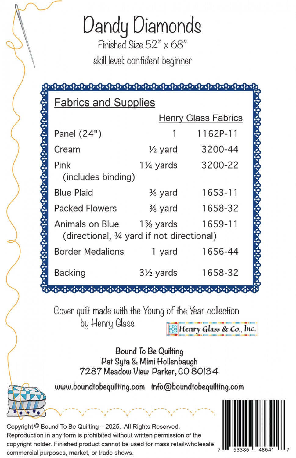 Dandy Diamonds Quilt Pattern is backordered and will ship as soon as it is back in stock.
