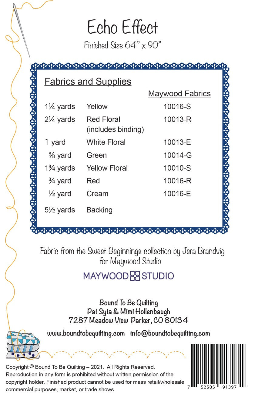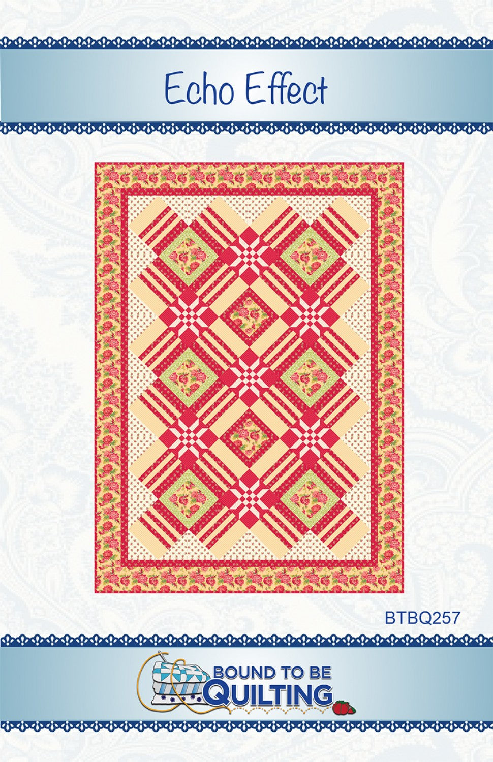 The two "strippy" blocks in this quilt create an echoing effect out from the center blocks. Finished size is 64" x 90".