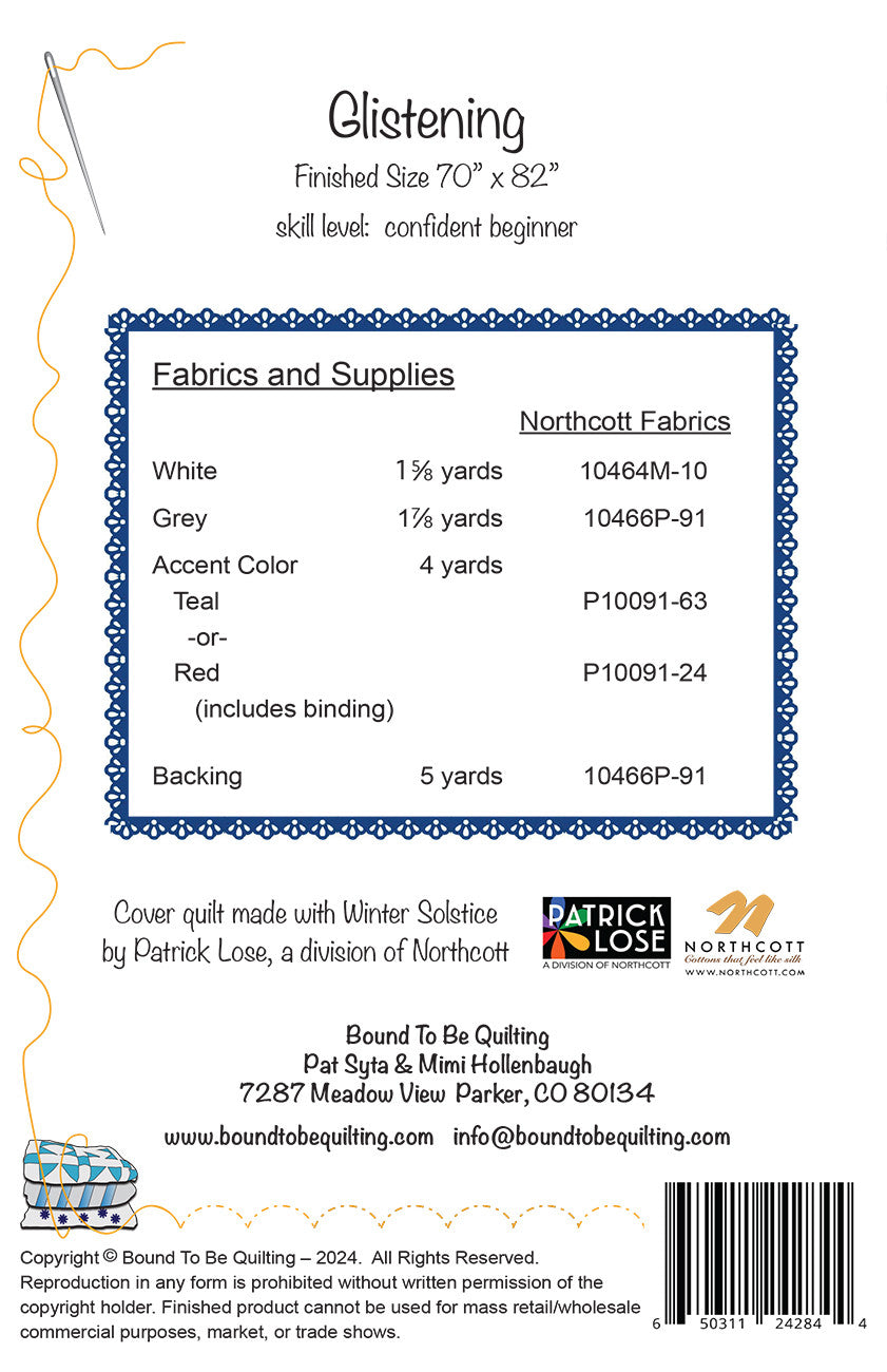 Glistening Quilt Pattern is backordered and will ship as soon as it is back in stock.