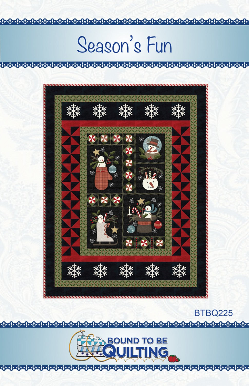 Pinwheels and machine applique snowflakes echo the designs of this 27" panel. Finished size is 53" x 69"