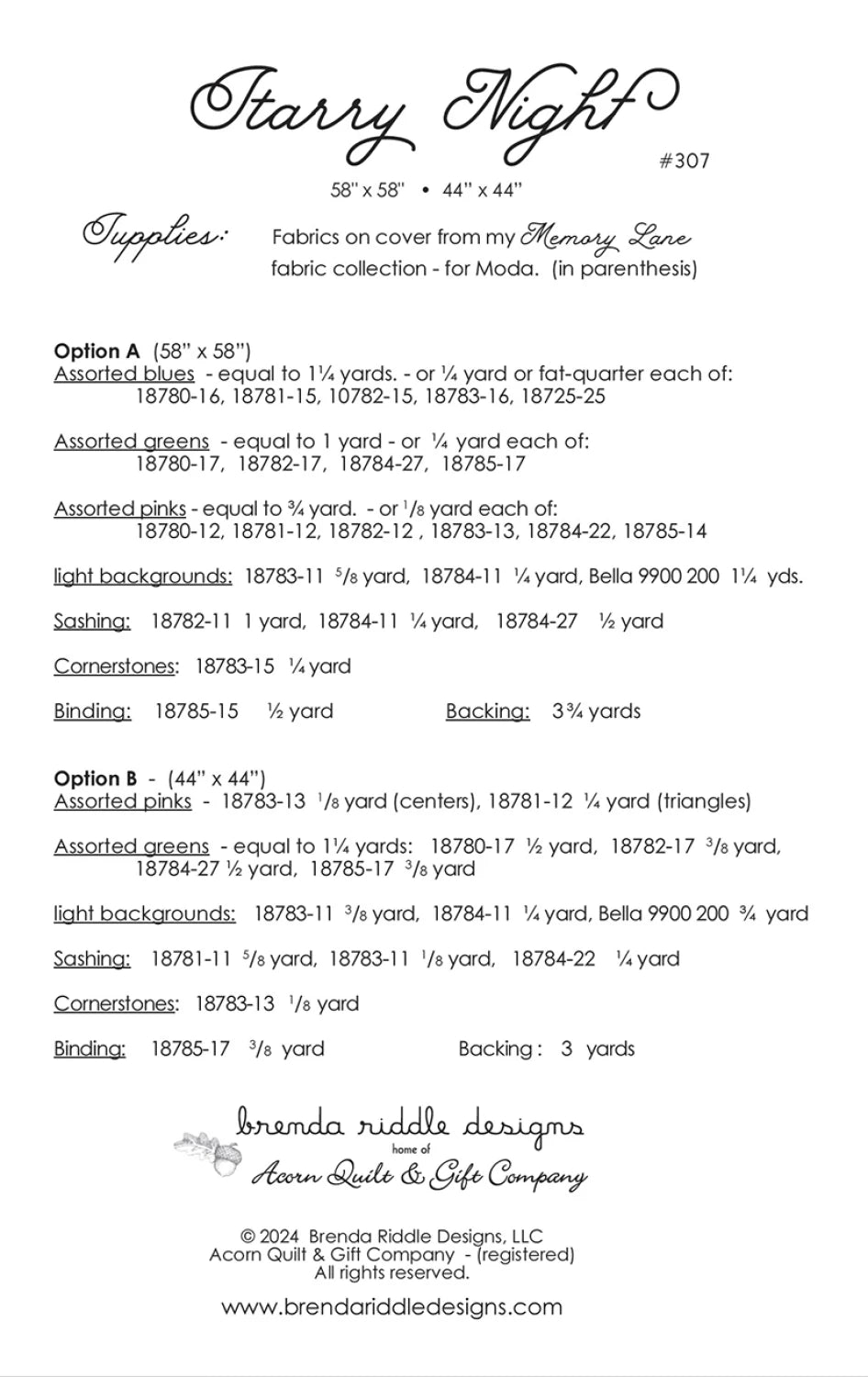 Starry Night Quilt Pattern is backordered and will ship as soon as it is back in stock.