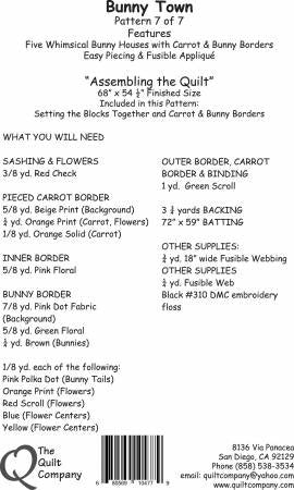 Assembling the QuiltThe Assembly Pattern includes the easy pieced Carrot Border and the fusible applique Bunny & Flowers Border.
