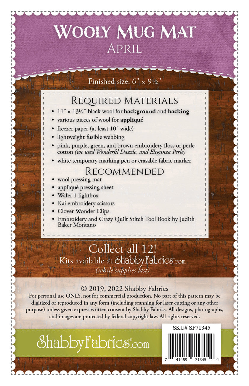 Wooly Mug Mat April Pattern is backordered and will ship as soon as it is back in stock.