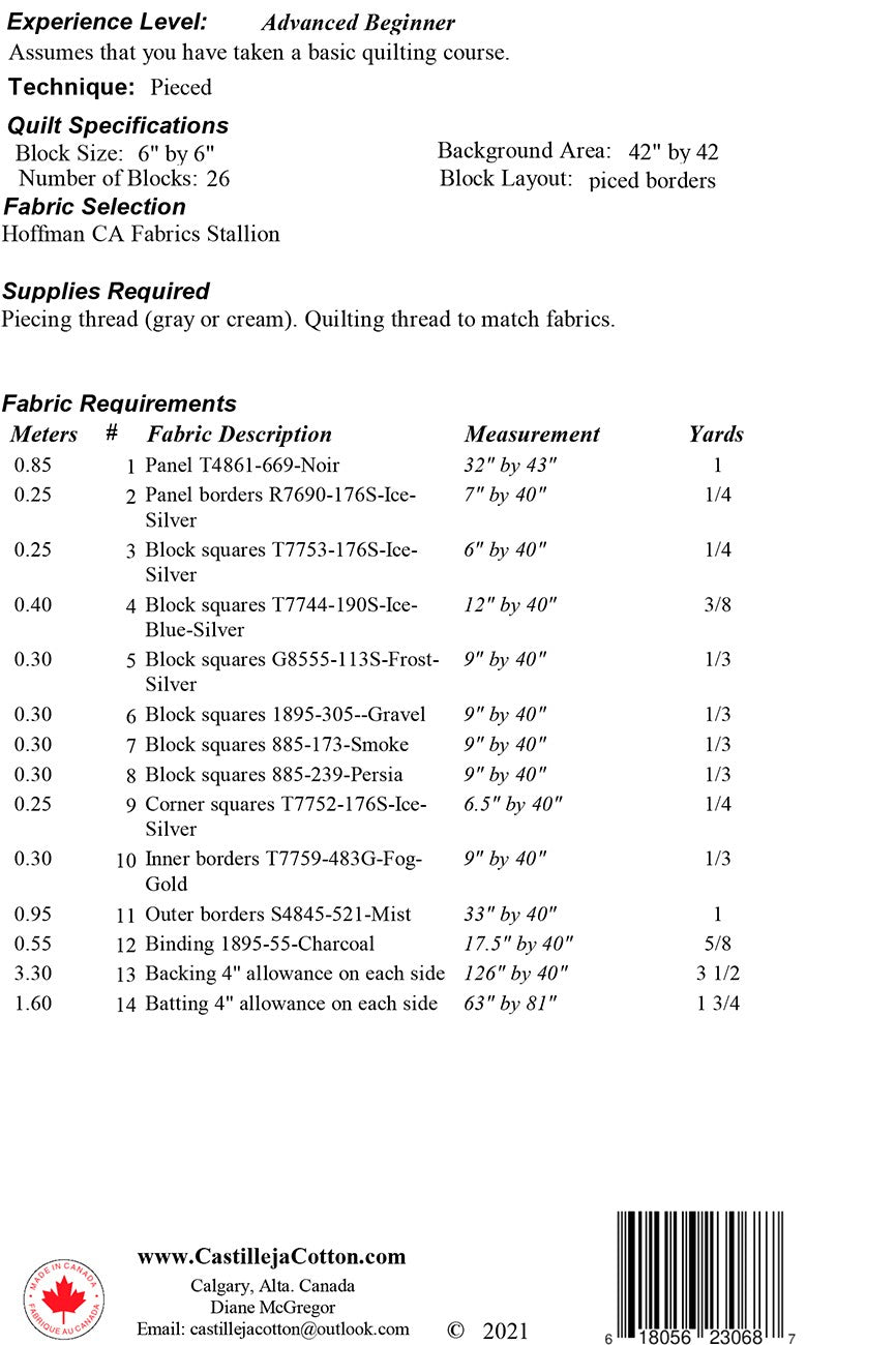 Panel with a simple pieced border. Horse panel quilt pattern. Fabric shown in the sample quilt is Hoffman CA Fabrics Stallion.