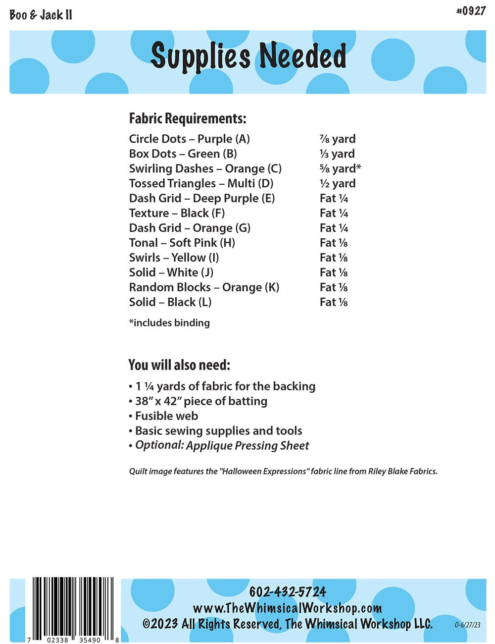 30" x 34" Advanced Beginner, Applique project featuring the Halloween Expressions fabric line from Riley Blake.