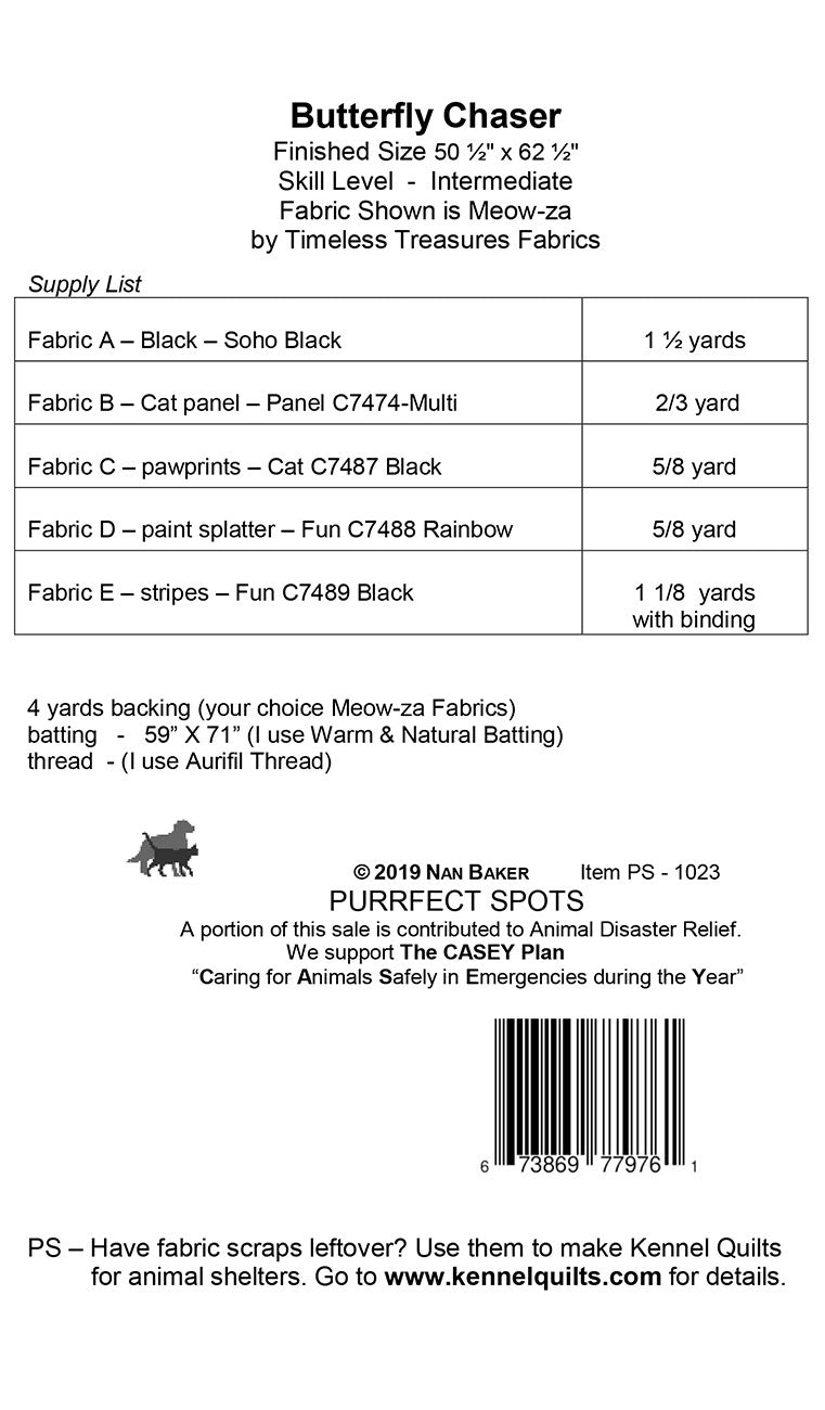 A "Purrfect" design for any cat lover! Panel lap/throw quilt pattern featuring the Meow-za fabric line by Timeless Treasures. 50in x 62in
