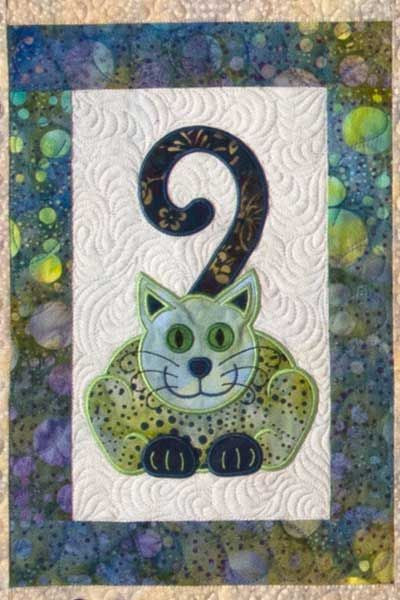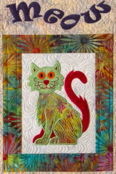 Must have quilt pattern for any cat lover. 7 stylish embroidery applique cats & 5 additional cat related designs. 26in x 43in Wall Hanging 50in x 50in Quilt.