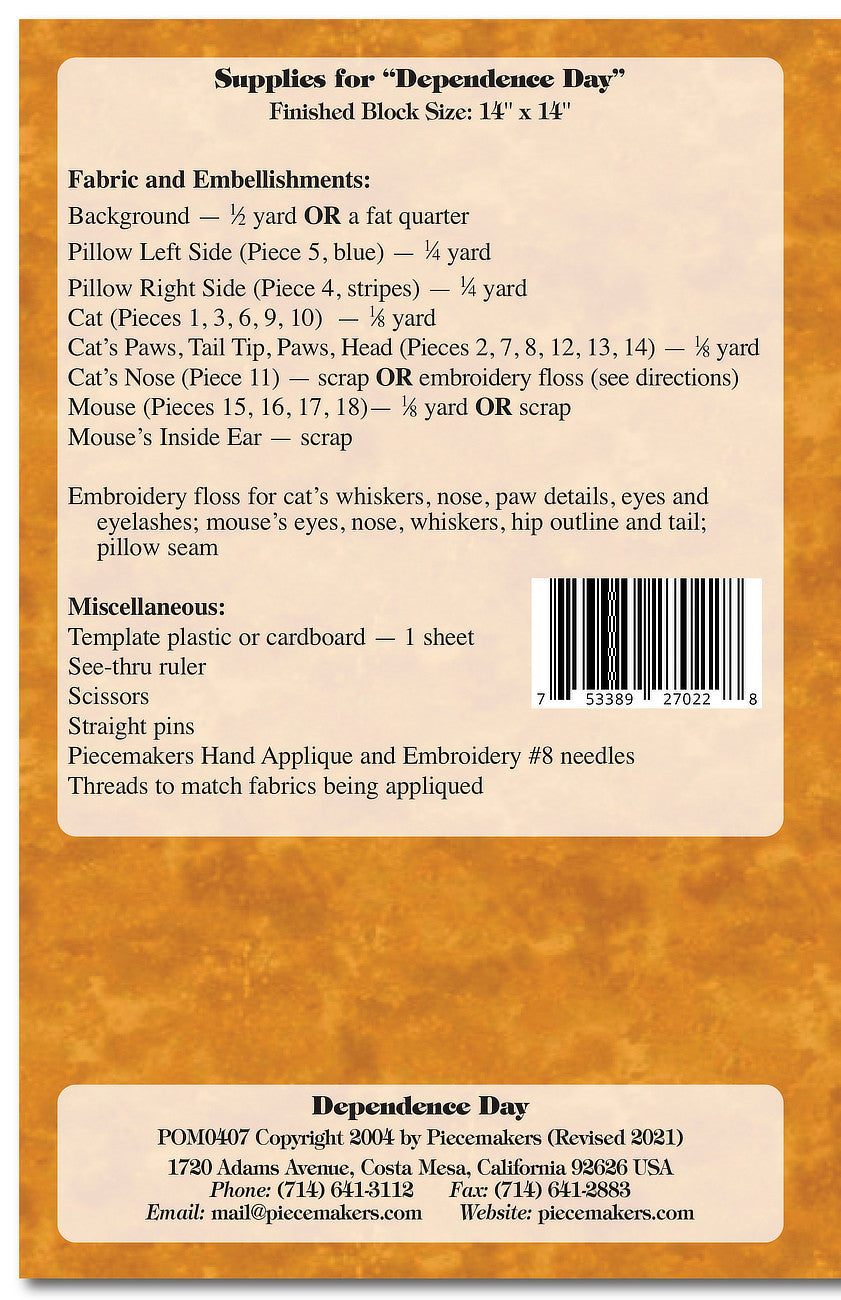 Dependence Day Quilt Pattern is backordered and will ship as soon as it is back in stock.