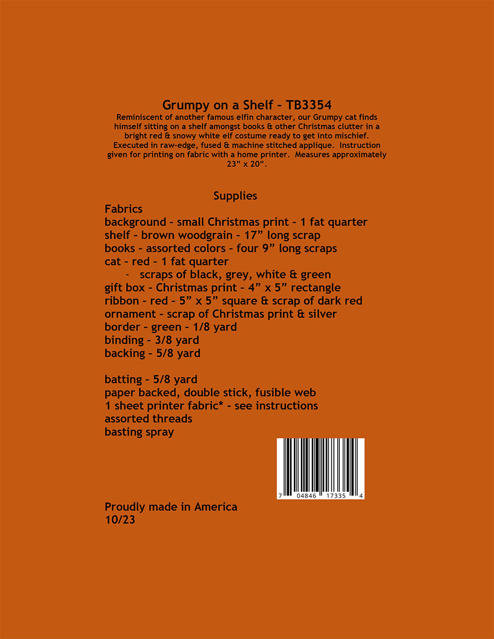 Grumpy on a Shelf Quilt Pattern is backordered and will ship as soon as it is back in stock.