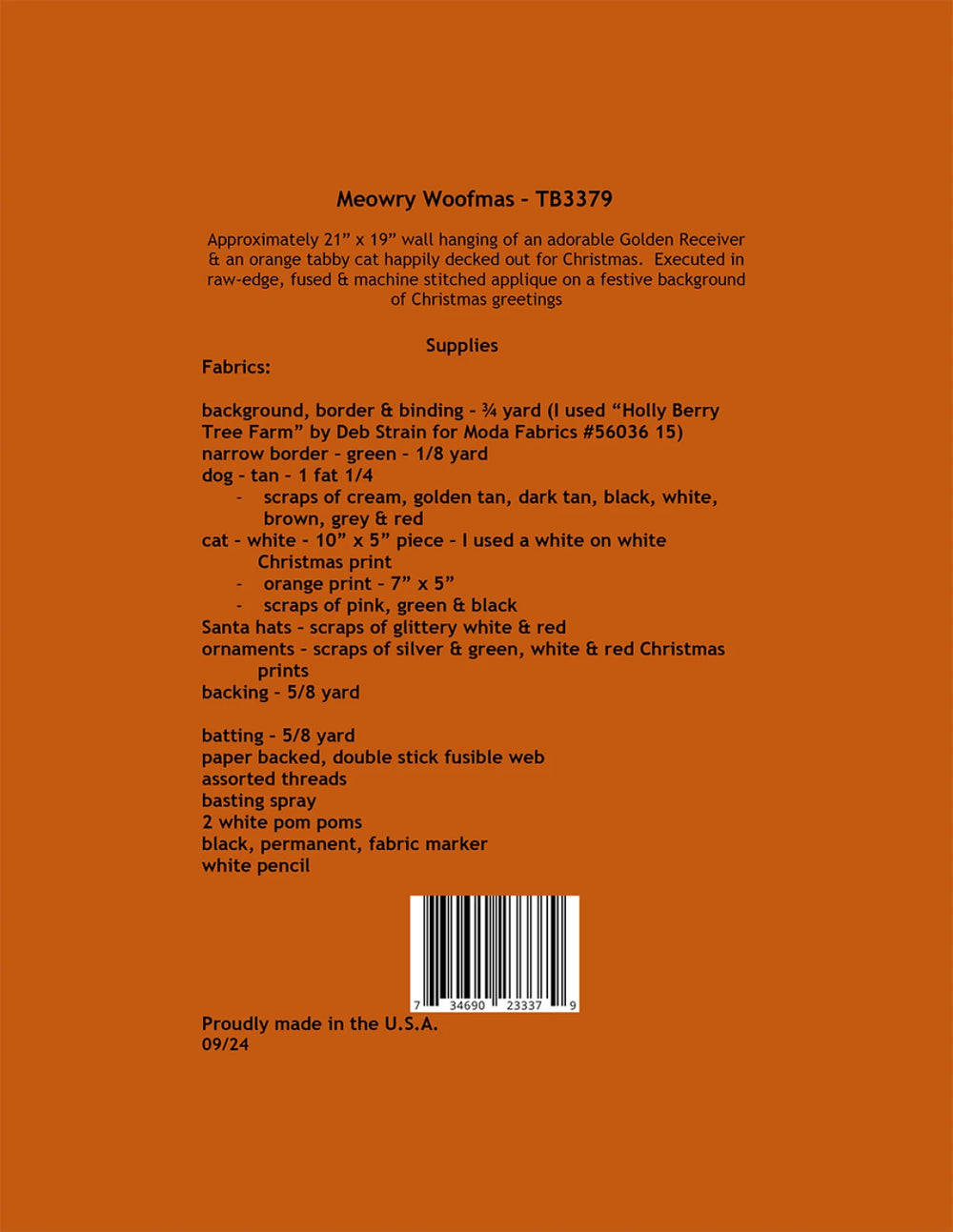 Executed in raw-edge, fused & machine stitched applique on a festive background of Christmas greetings.