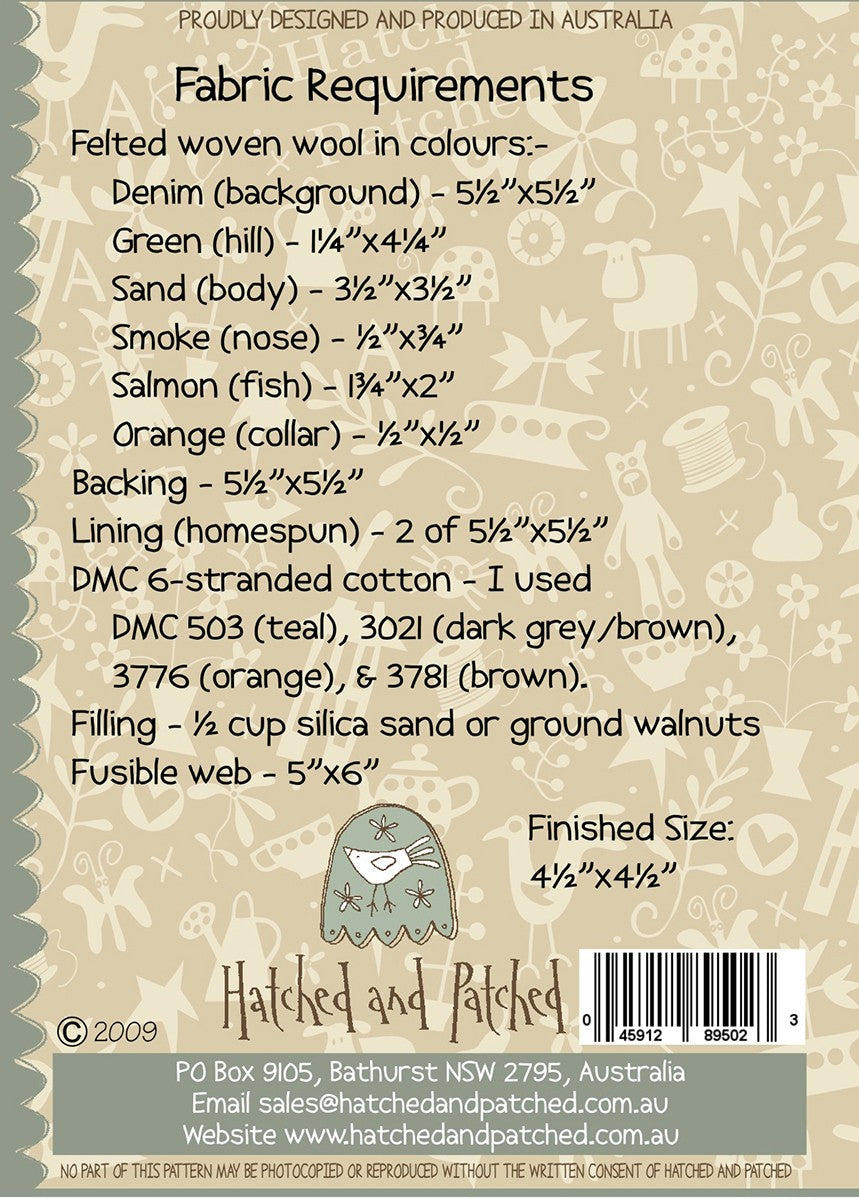 This cute little character is dreaming of lunch! Made from woven wool applique this is an easy-to-make pincushion for all ages.