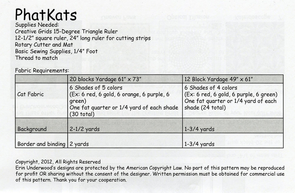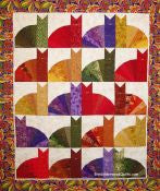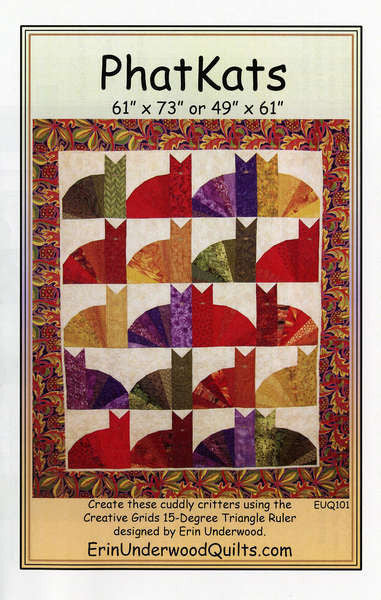 A new twist on an old favorite with the Creative Grids 15-Degree Triangle Ruler CGREU1. This fan block has no curved piecing or applique! Each cat block comes together quickly brining a smile to your face! Great for scraps! The pattern offers two sizes, 61 x 73 and a smaller version measuring 49 x 51.