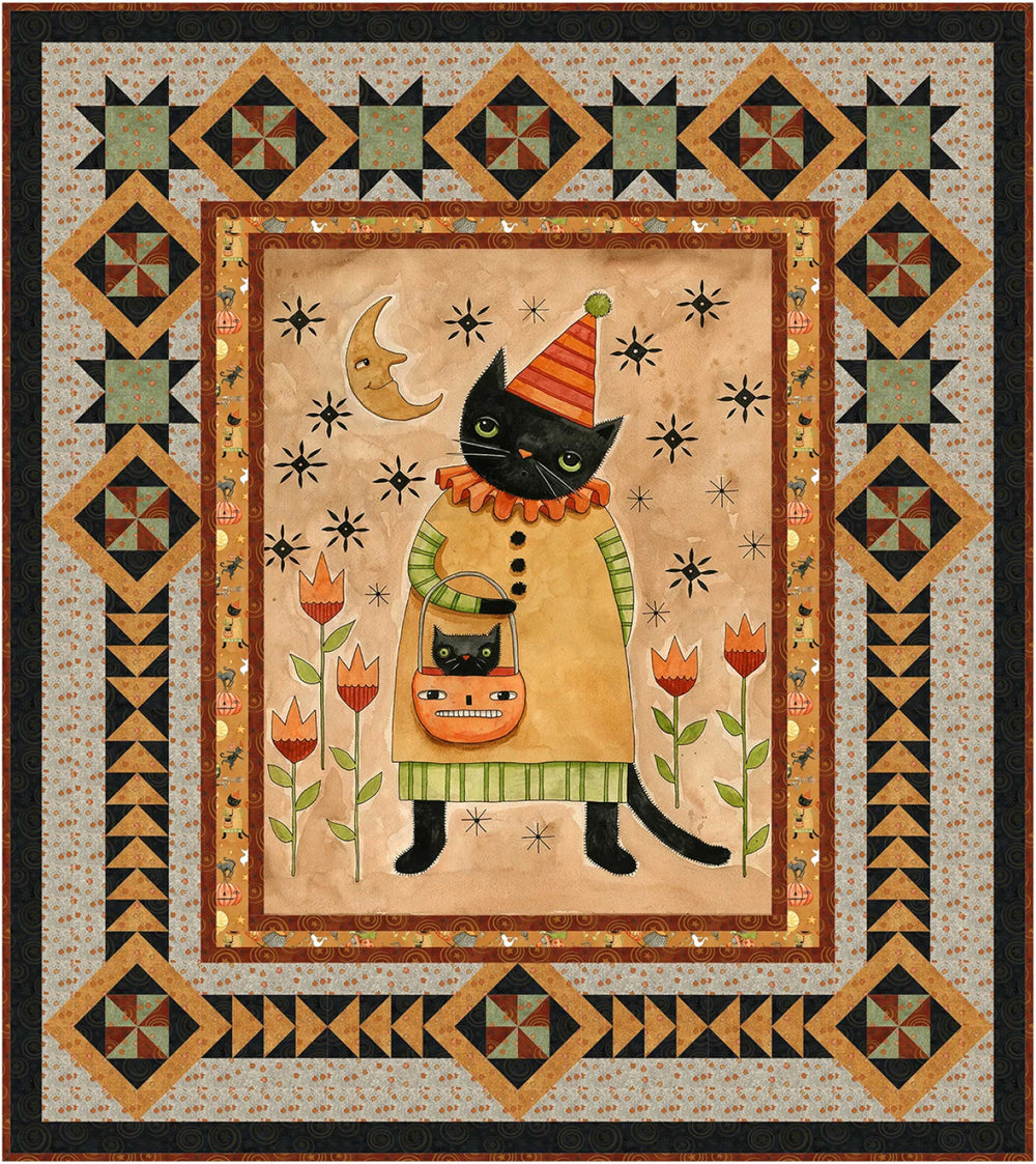 Add a dash of whimsy and a whole lot of charm to your autumn décor with the Spooky Kitty quilt!