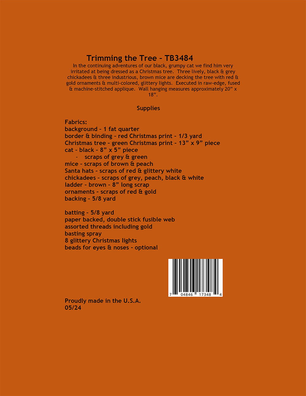 Trimming The Tree Quilt Pattern is backordered and will ship as soon as it is back in stock.