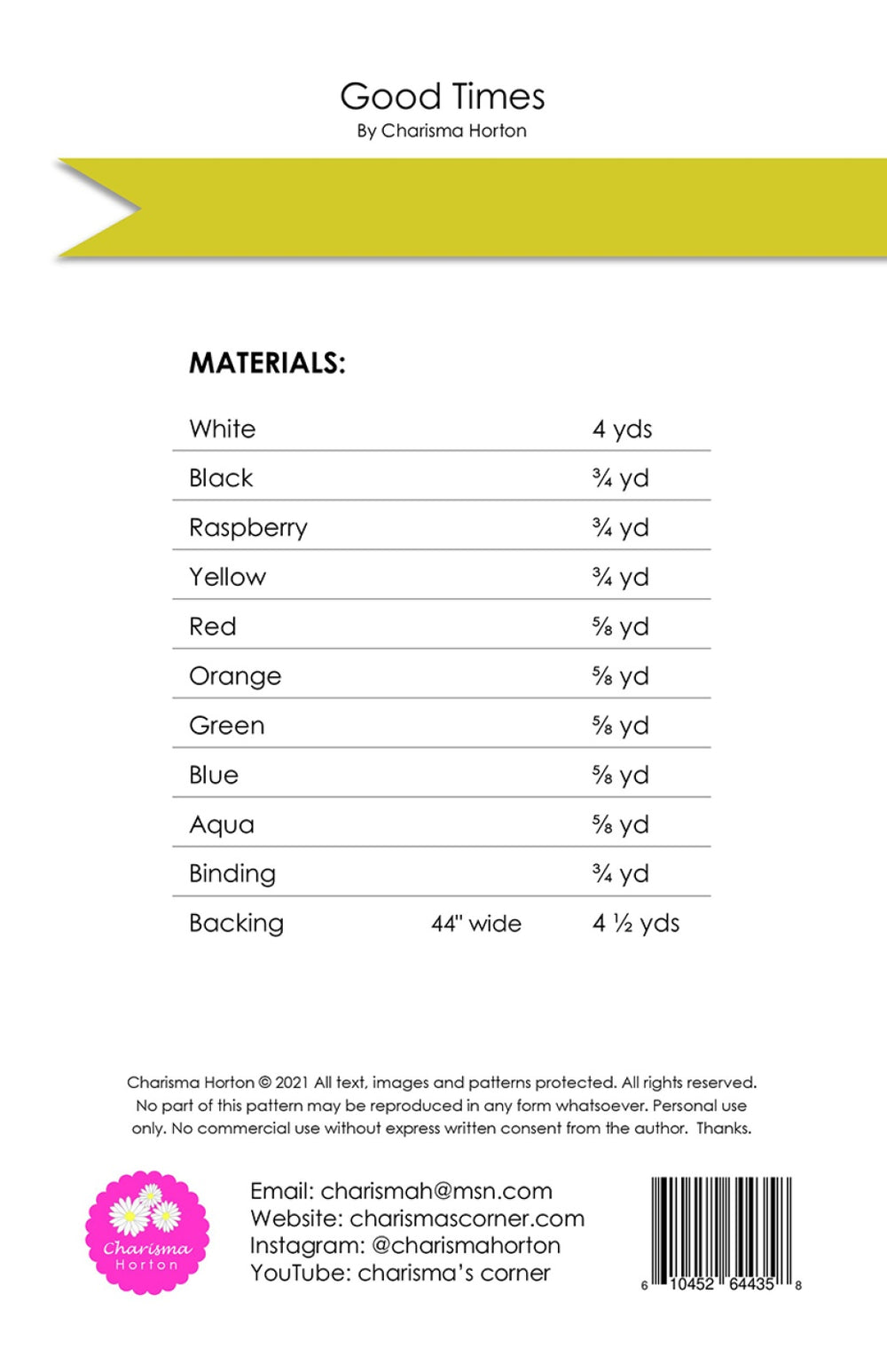 Good Times Quilt Pattern is backordered and will ship as soon as it is back in stock.