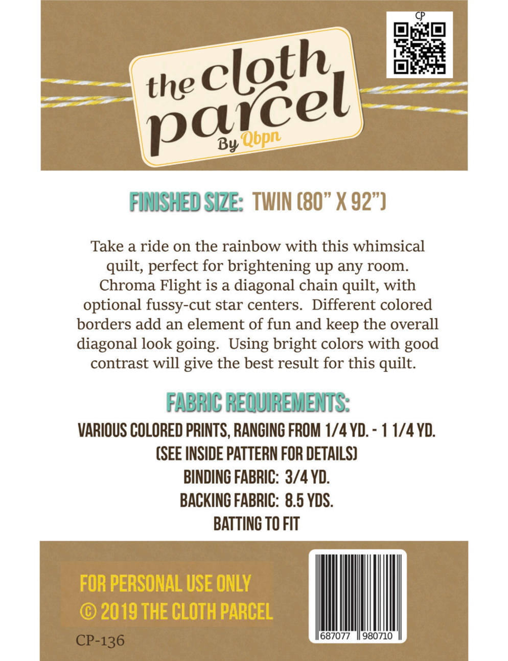 Detailed instructions with illustrations for creating your own Chroma Flight Quilt are included in our original pattern.