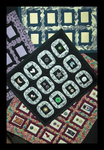 This pattern contains 4 different styles of frames which may be filled with any number of items. How small mementoes from a loved one, or photographs, baby items, a brooch collection, mens pins from various organizations, pins from quilt shows, veterans medals, and the list goes on!To make the wall hanging even more personal, choose fabrics that remind you of a special person. Or even better, use an item of their clothing for the background or the picture frames.Sizes vary as you can just prepare as many frames as you have items to display.