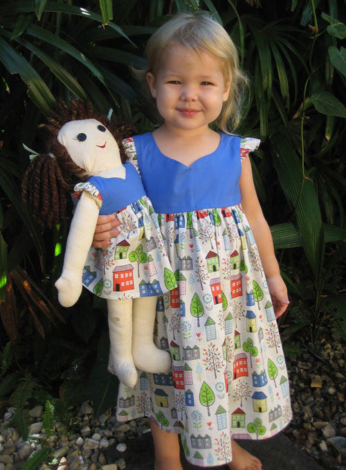 Sweetheart Dress is such a cute dress and this pattern includes instructions for a girls dress & a dolls dress. Pattern also comes with super cute wooden dolls hanger included.