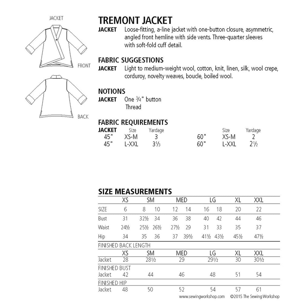 Tremont Jacket Pattern is backordered and will ship as soon as it is back in stock.