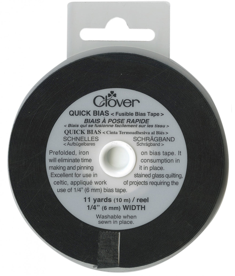 Pre-folded iron-on bias tape. Eliminates making bias & pinning into place. Use for stain glass applique and pinweaving, etc.