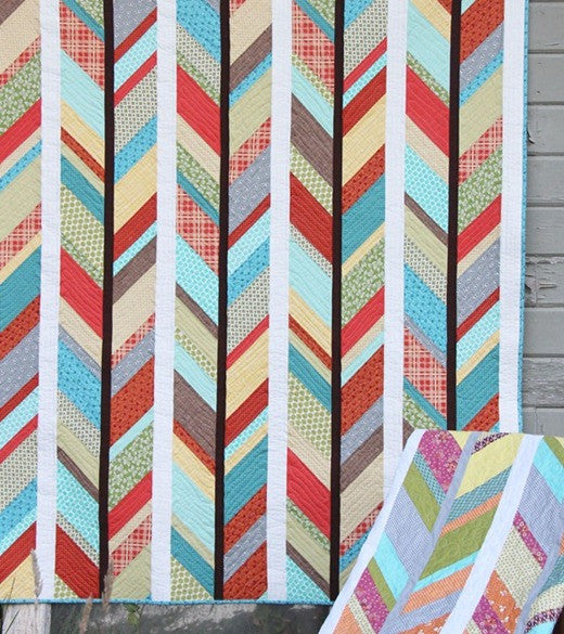 Scout is an easy-to-make herringbone quilt using yardage and strip piecing...no templates required! The pattern includes a crib size or a throw size. I recommend this pattern for intermediate to advanced beginners that are comfortable with piecing angled seams.Crib 49in x 52in and Throw 61in x 71in