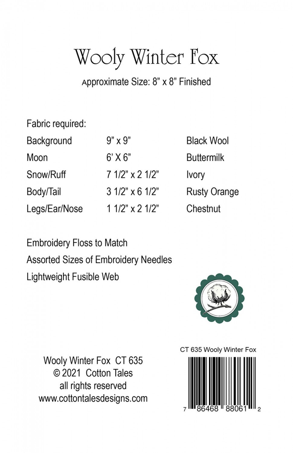 - Finished Size: 8in x 8in