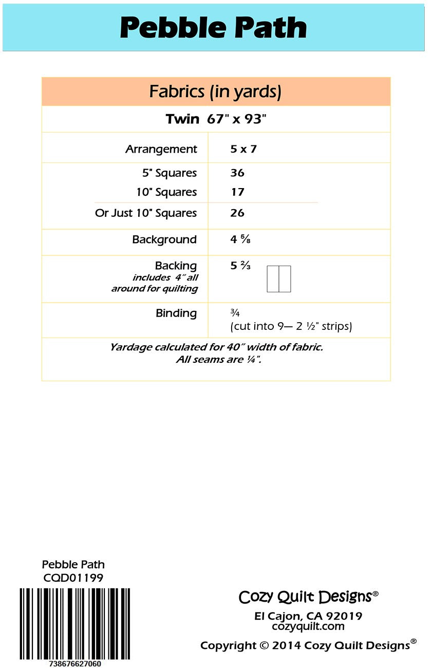 A popular favorite quilting pattern from Cozy Quilt Designs the Pebble Path, designed by Daniela Stout, features a pattern made for 5in and 10in squares.