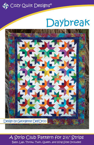 Start every morning off right with this cheerful yet sophisticated quilt pattern. Start with a bundle of 2-1/2in strips, add some background fabrics, pick an accent, and do a little stitch-and-fold sewing technique (easy and fun). Sizes Baby, Lap, Throw, Twin, Queen, and King.