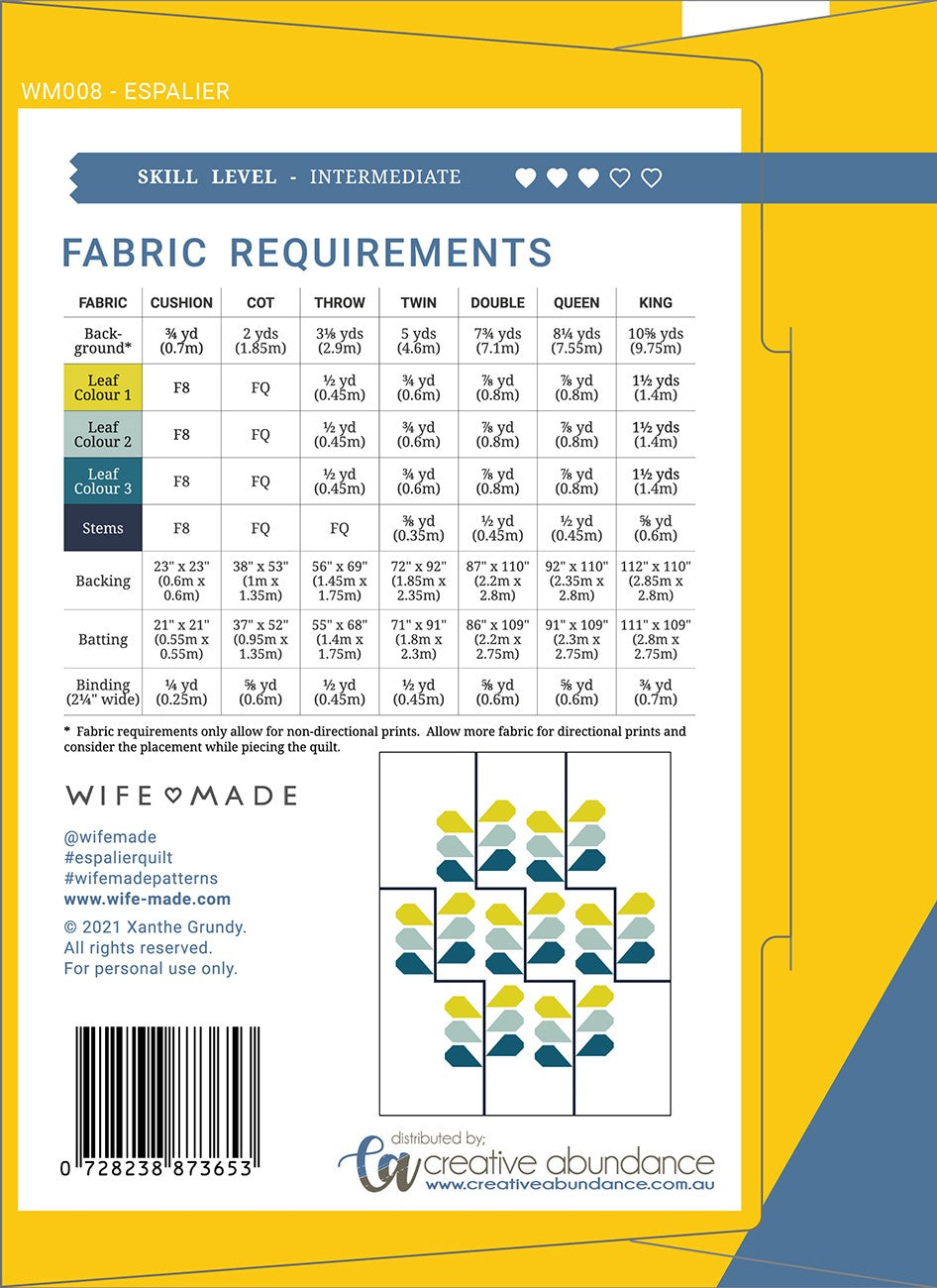 A timeless design inspired by the garden, the Wife-made Espalier Quilt can be styled to suit many themes - soft and pretty for a baby's nursery, bright and bold for a child's bedroom or stash-buster scrappy to snuggle up in on the sofa!