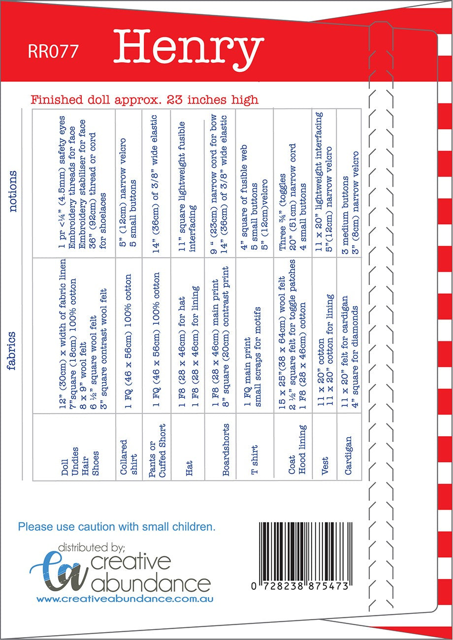 Henry’s clothes are all generously sized for small hands to play and dress him.