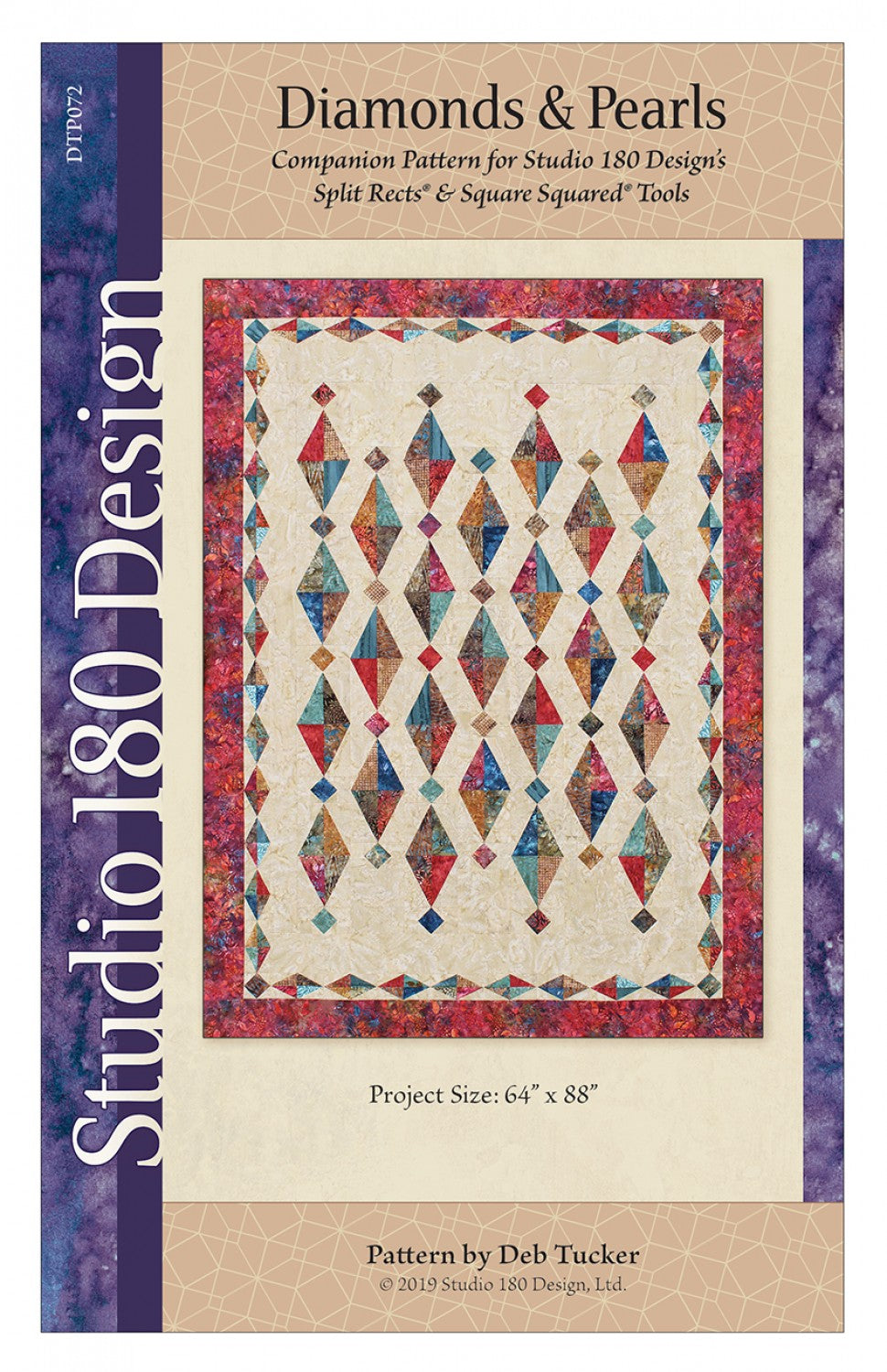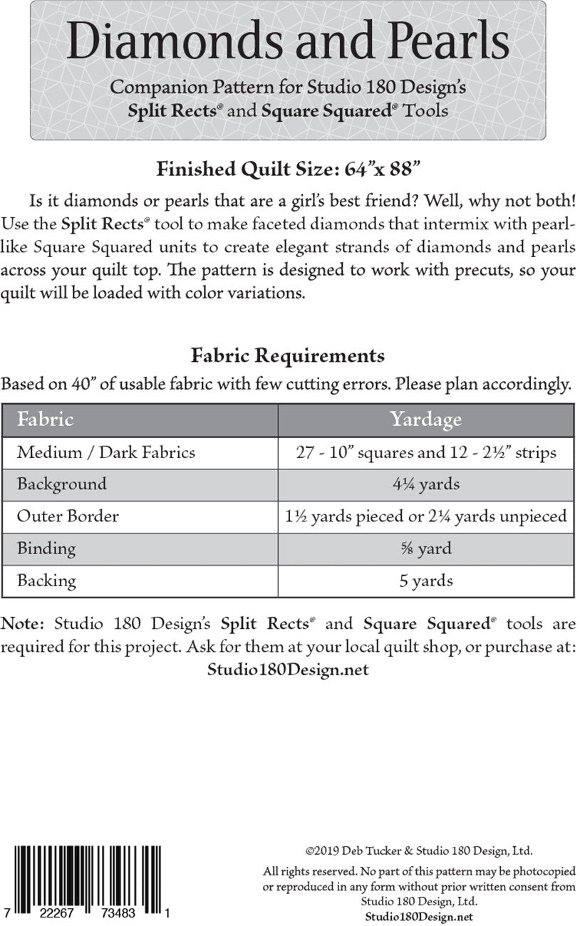 Us the Split Rects tool to make faceted diamonds that intermix with pearl-like Square Squared units to create elegant strands of diamonds and pearls across your quilt top.