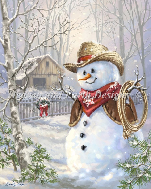 Cowboy Snowman Cross Stitch By Dona Gelsinger