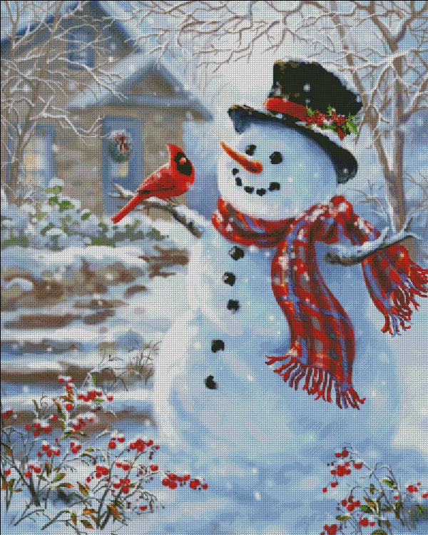 Snowman and Feathered Friend Cross Stitch By Dona Gelsinger